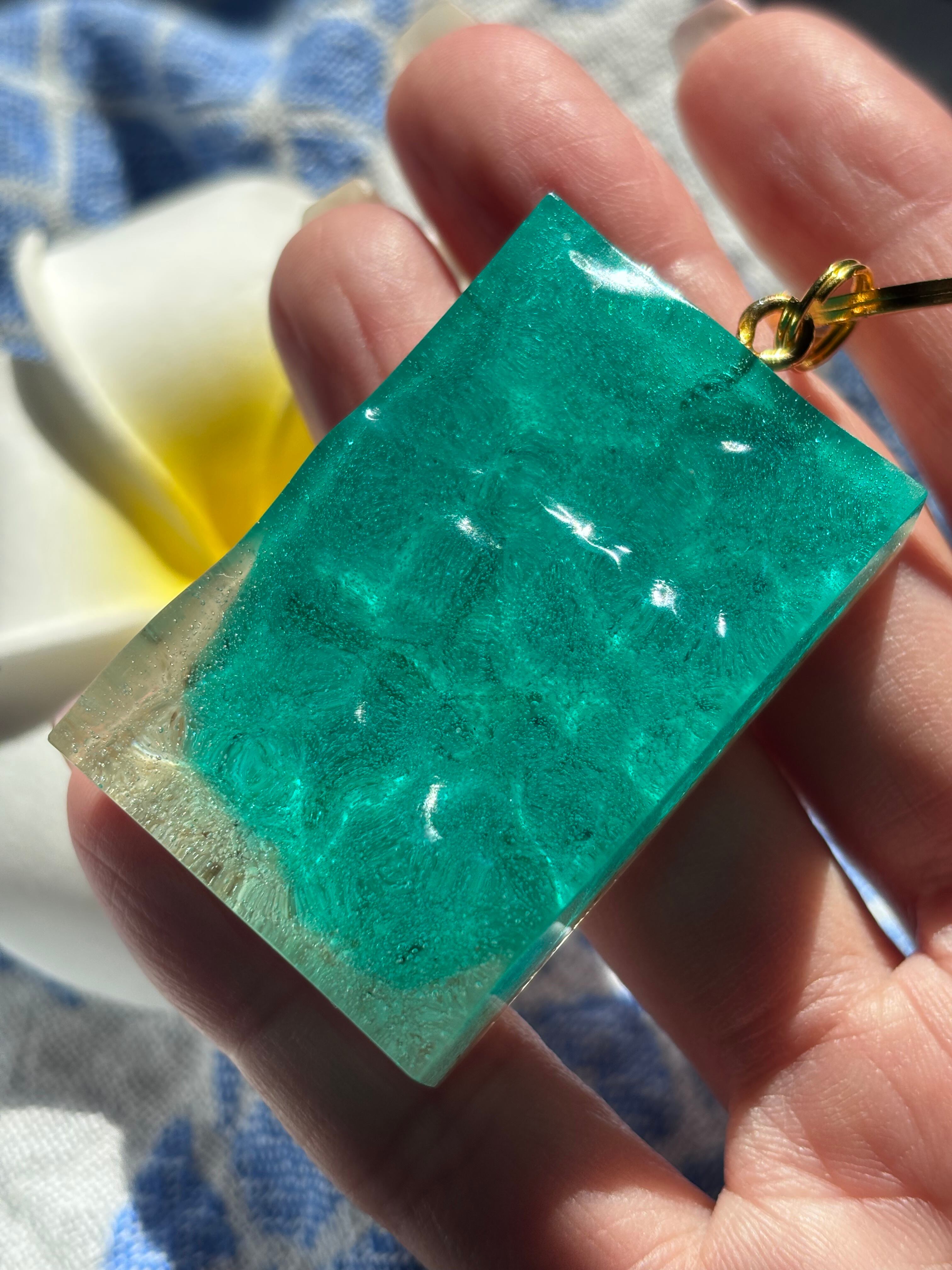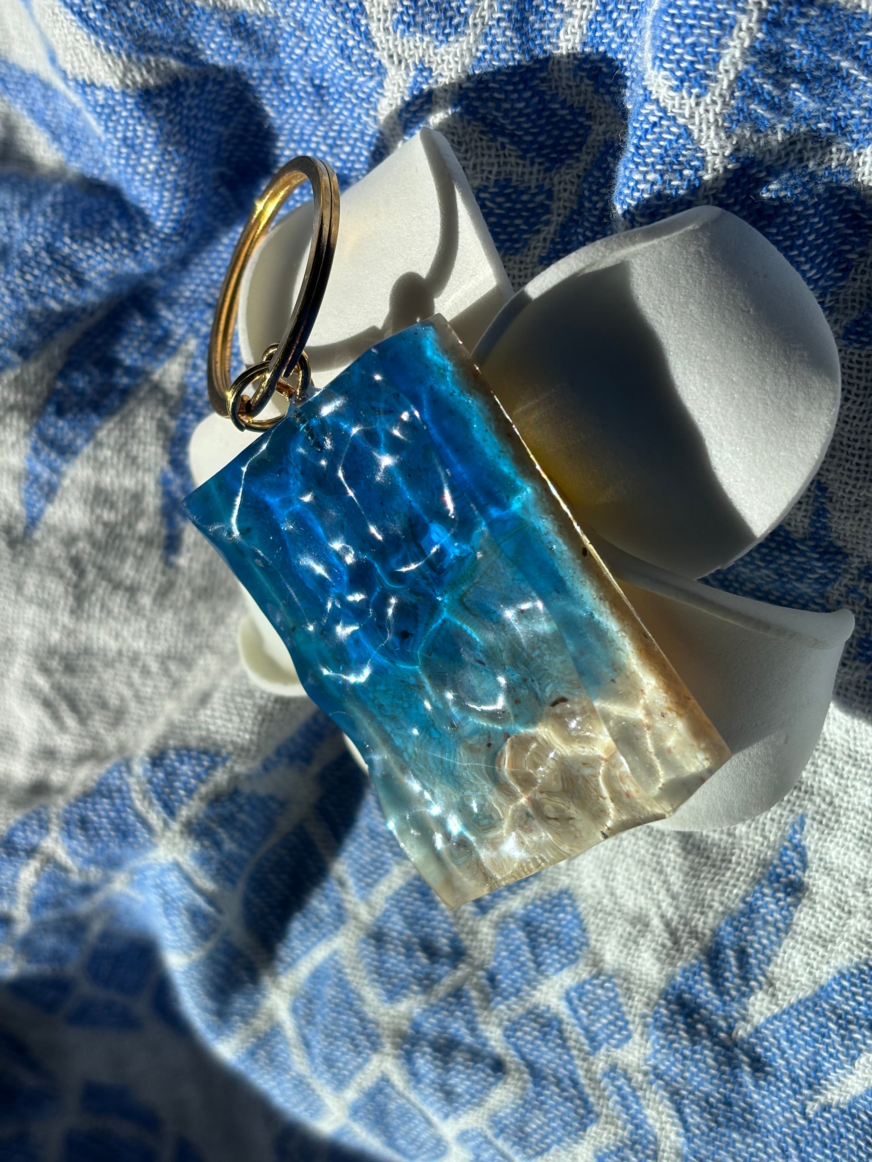 透明感のあるレジンに海の砂を閉じ込めました