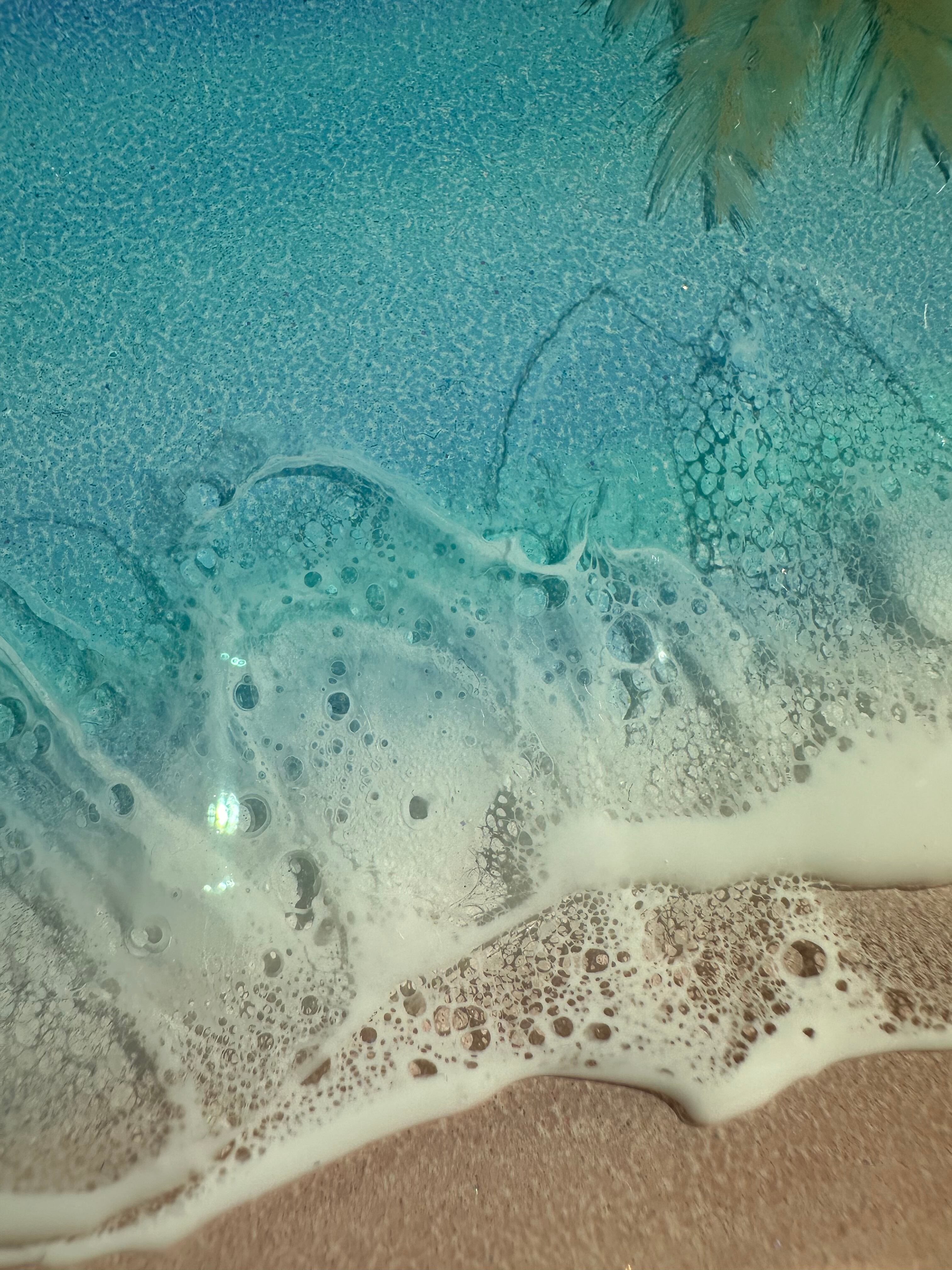 穏やかな波とパームツリーが描かれたレジンアートパネルです。